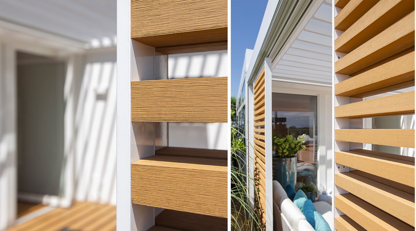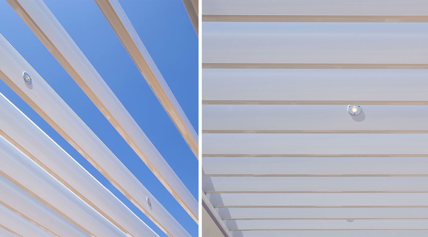 Pergospace R640 rappresenta il meglio che l’evoluzione tecnologica e il design possano garantire. Less is more è il filo conduttore di questa nuova creazione, autentico condensato di raffinatezza e comfort. Questa pergola bioclimatica si distingue per le finiture hitech ed i innovativi dettagli costruttivi: elementi personalizzabili che spaziano dal colore della struttura alla scelta della cromia per i diversi elementi fino alla possibilità di inserire luci led integrate e sistemi scorrevoli tuttovetro o sistemi di chiusura per dare vita ad una stanza in più da vivere tutto l’anno.