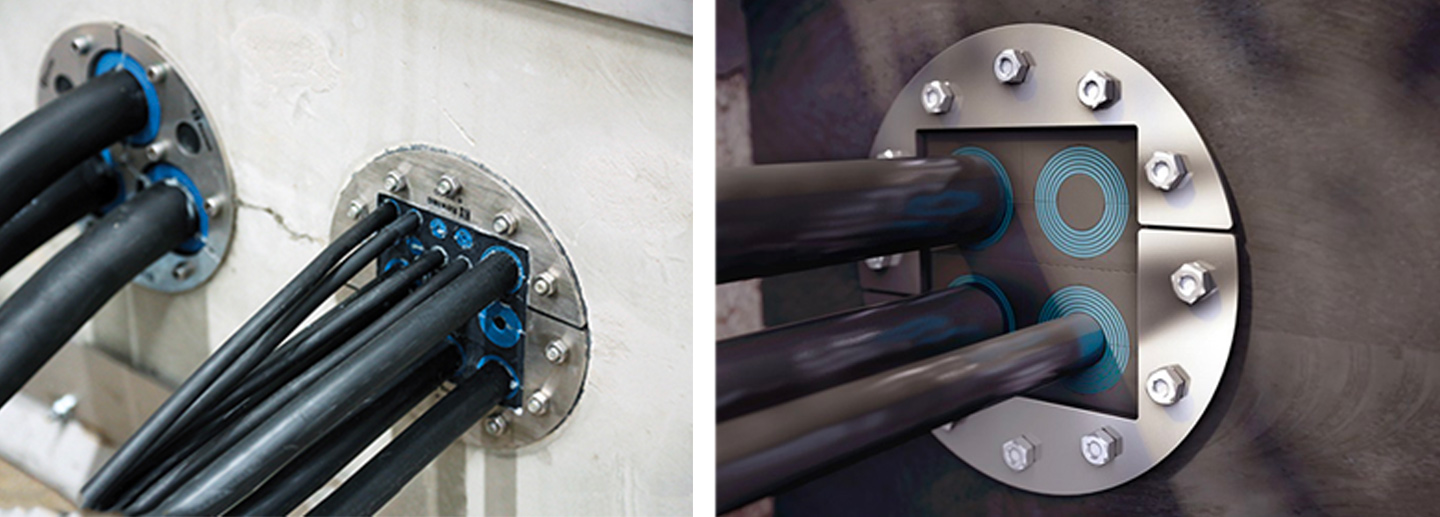 Il sistema di sigillatura Roxtec garantisce protezione certificata contro molteplici rischi. I passaggi Roxtec GH e GH FL100 semplificano la sigillatura di un elevato numero di cavi e tubi di diverse dimensioni nella stessa apertura. Sono progettati per il fissaggio mediante imbullonatura a vari tipi di pareti e pavimenti.