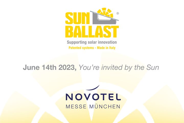 L’evento esclusivo fissato per il 14 giugno al Novotel di Monaco di Baviera - a due passi dall’ingresso della fiera - è dedicato a tutti i clienti Sun Ballast: durante i quattro momenti di incontro verranno raccontate tutte le novità dell’ultimo anno, e i partecipanti avranno l’opportunità di confrontarsi direttamente con il Team Sun Ballast. Un’occasione per conoscere da vicino tutte le più recenti soluzioni, a partire da No-Flex e dai nuovi sistemi dedicati ai tetti a falda.