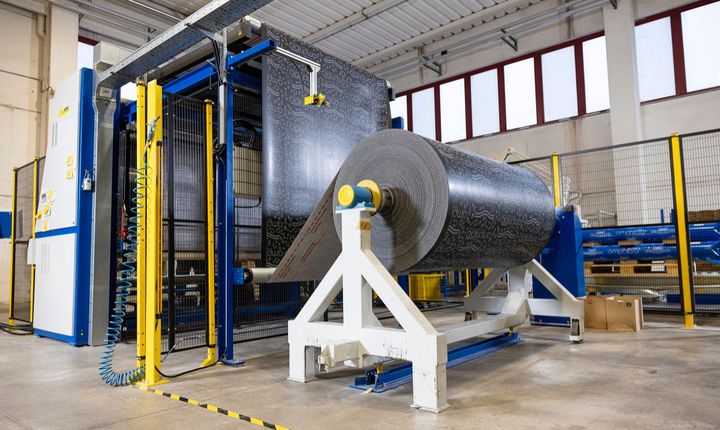 Amphibia 3000 Grip, un'innovativa membrana impermeabile, autosigillante e autoriparante prodotta nello stabilimento di Ponzano Veneto, dove sono stati installati diversi sensori per il monitoraggio dei dati.