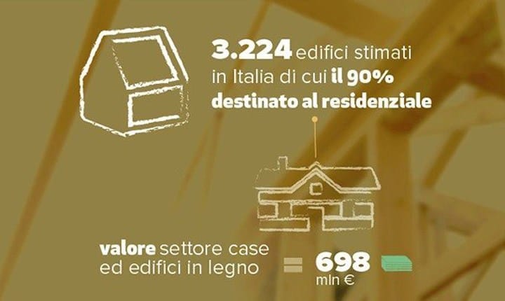 La ricerca restituisce dati sorprendenti: le costruzioni in legno rappresentano il 7% delle nuove abitazioni costruite dal settore edile (2017) con un numero di edifici stimati realizzati sul territorio nazionale pari a 3.224, di cui il 90% destinato al residenziale, per una stima di valore complessivo del costruito pari a circa 700 milioni di euro.Le imprese che operano nella realizzazione di edifici in legno sono spesso diversificate anche in altri segmenti del mercato in legno (grandi costruzioni, ponti, coperture in legno eccetera) e complessivamente generano un mercato che si stima in 1,3 miliardi di euro.
