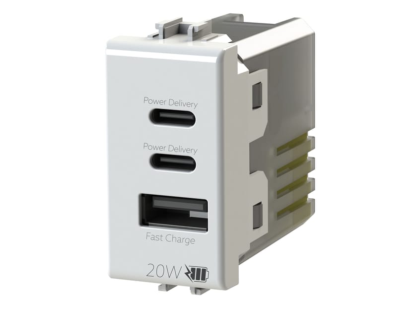 La soluzione più completa per la ricarica USB in un singolo modulo. La presa USB CCA 20W ricarica velocemente i dispositivi, è versatile e garantisce la massima sicurezza.