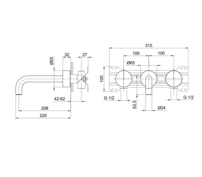 ABOUTWATER AF/21 Rubinetto per lavabo a 3 fori a muro Linea AF/21