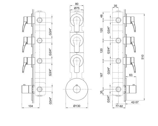 Miscelatore termostatico vasca/doccia incasso (3/4”), 3 uscite.