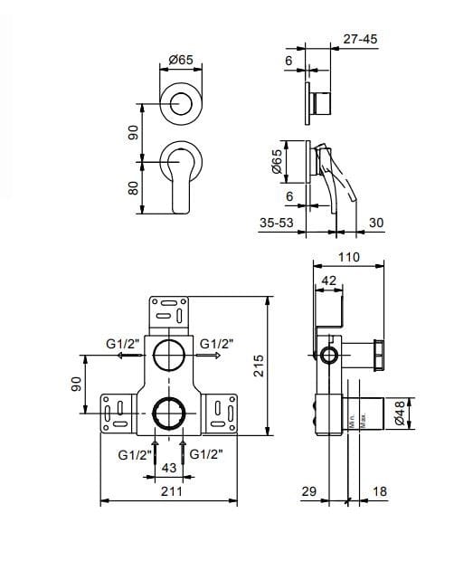 ABOUTWATER AL/23 Miscelatore per doccia a 2 fori con deviatore Linea AL/23