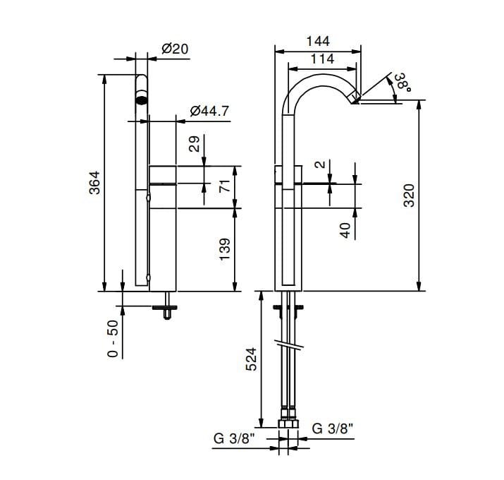 Y006WF - Miscelatore lavabo alto monoforo, interasse bocca 13,2 cm / Cartuccia tradizionale.