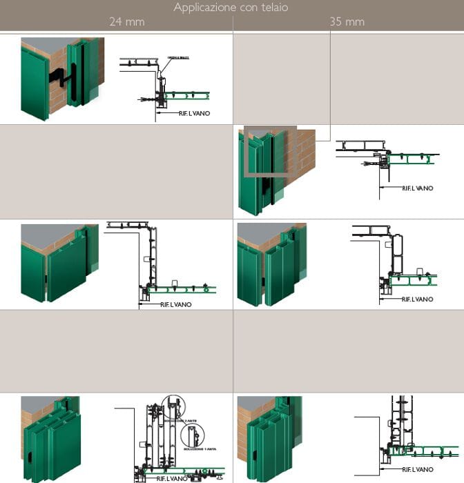 Lagamma di scuri prevede sia una serie con doga “fugata” di spessore 35mm, sia una serie con doga “liscia” di spessore 24mm che grazie al ridotto ingombro risulta ideale per tutte le tipologie di scuro con impacchettamento all’interno della spalla del muro.