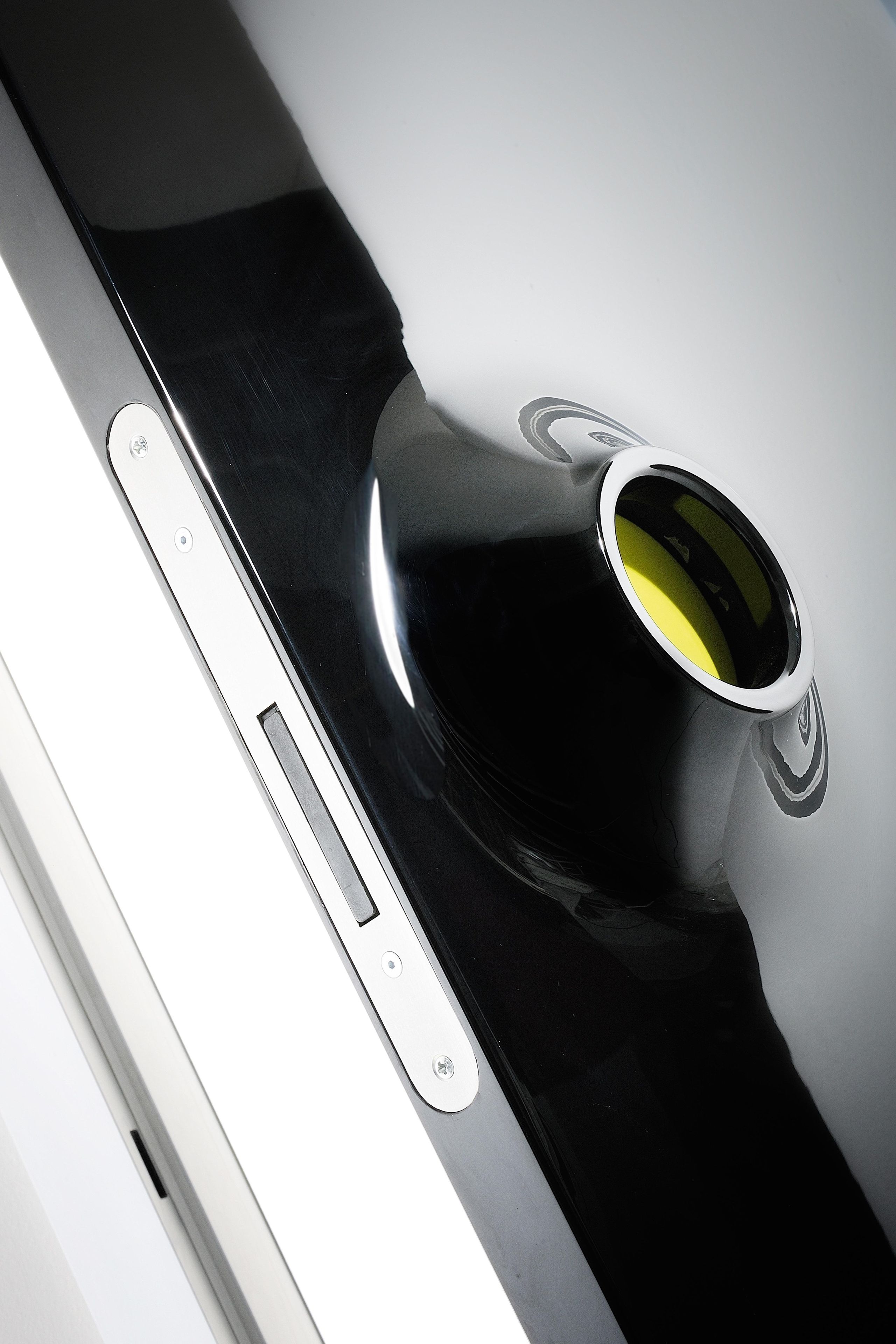 Quando il segno autoriale custodisce una sofisticata tecnologia di apertura. La maniglia è l’elemento distintivo della porta Ring. Un foro circolare, modellato a sembrare un cratere, accoglie un innovativo meccanismo di apertura della porta. Disponibile come porta battente sia nella versione con cornice che nella versione filomuro.