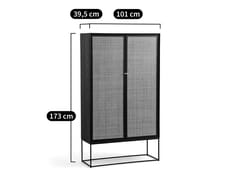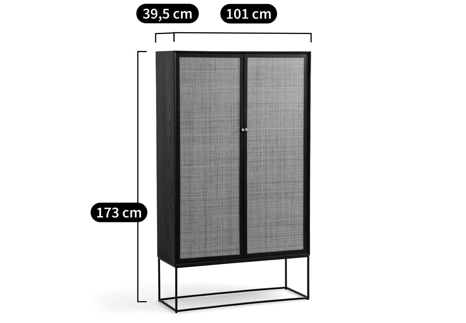 L'armadio Tamaroa seduce con l'armoniosa alleanza della sua struttura impiallacciata in rovere che incornicia due ante in vimini, sostenuta da una base in metallo.