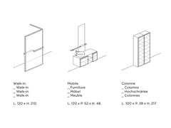 Allo stesso modo, i vetri disponibili per il walk-in sono utilizzabili anche per le antine del mobile, rafforzando l’idea di sistema integrato.