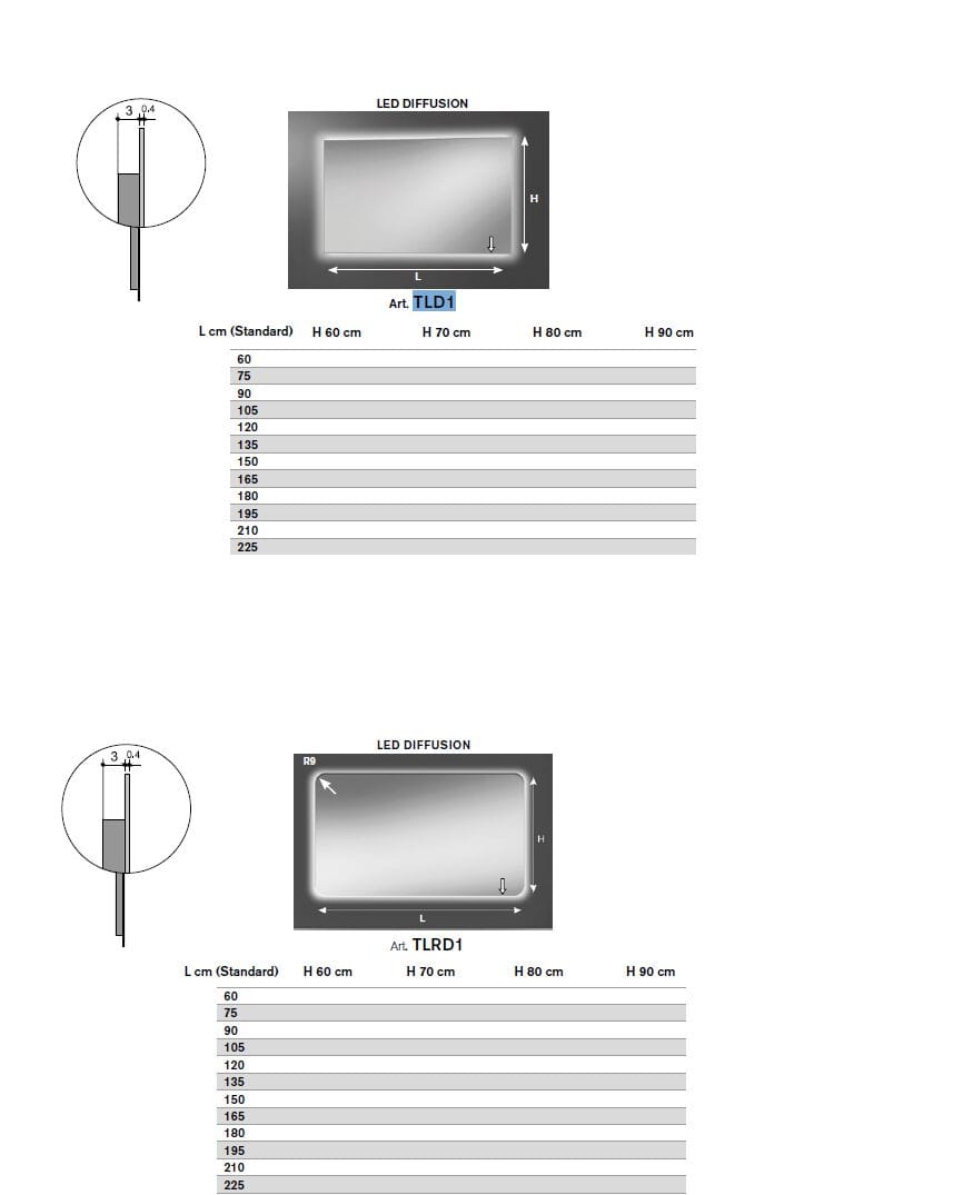 Art. TLD1 - Specchio 5 mm con LED DIFFUSION