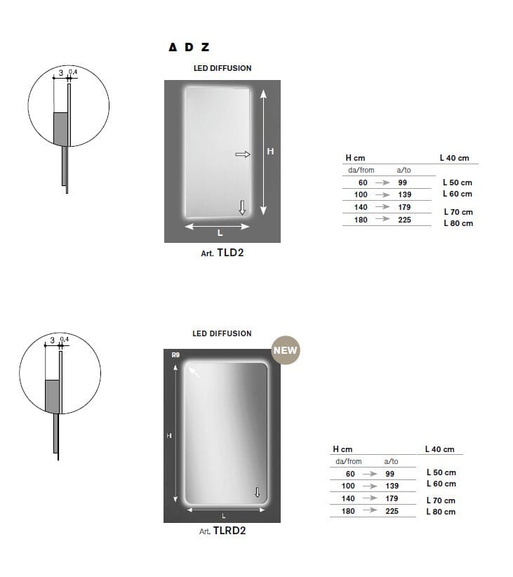 Art. TLD2 - Specchio verticale con LED DIFFUSION