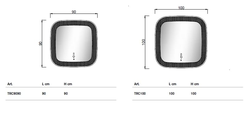 Ri-Tratti è uno specchio 4 mm bordo filo lucido con illuminazione perimetrale e frontale a led, trasformatore 220/12V e interruttore sensor frontale. Decori ottenuti tramite lavorazione laser.