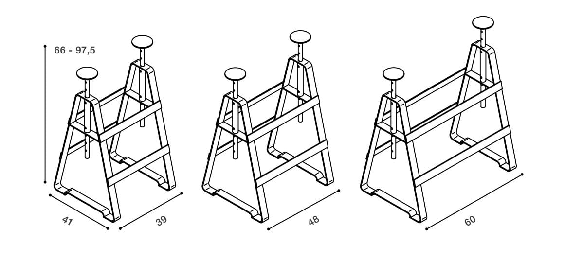 Un cavalletto regolabile in altezza realizzato in acciaio grezzo oliato. E' adatto a diversi tipi di piani e differenti lastre.