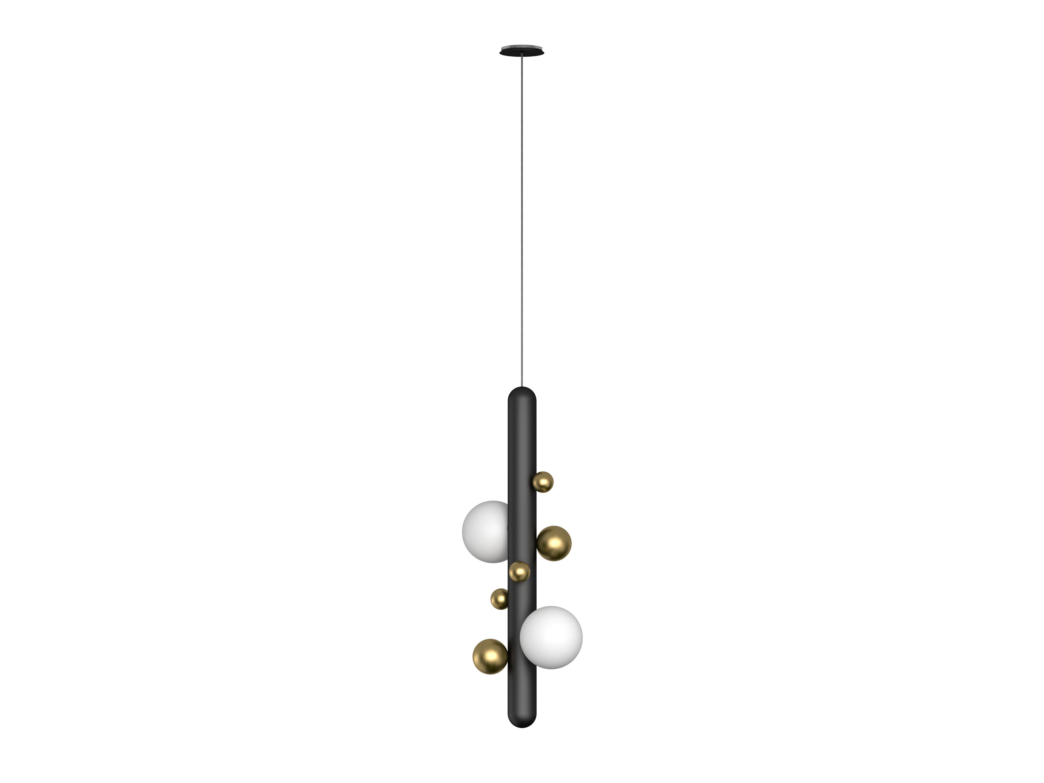LUNAR P è una lampada a sospensione a LED della collezione LUNAR. Il corpo della lampada in acciaio inox è disponibile in vari colori RAL; i 2 diffusori sono sfere di vetro opalino.