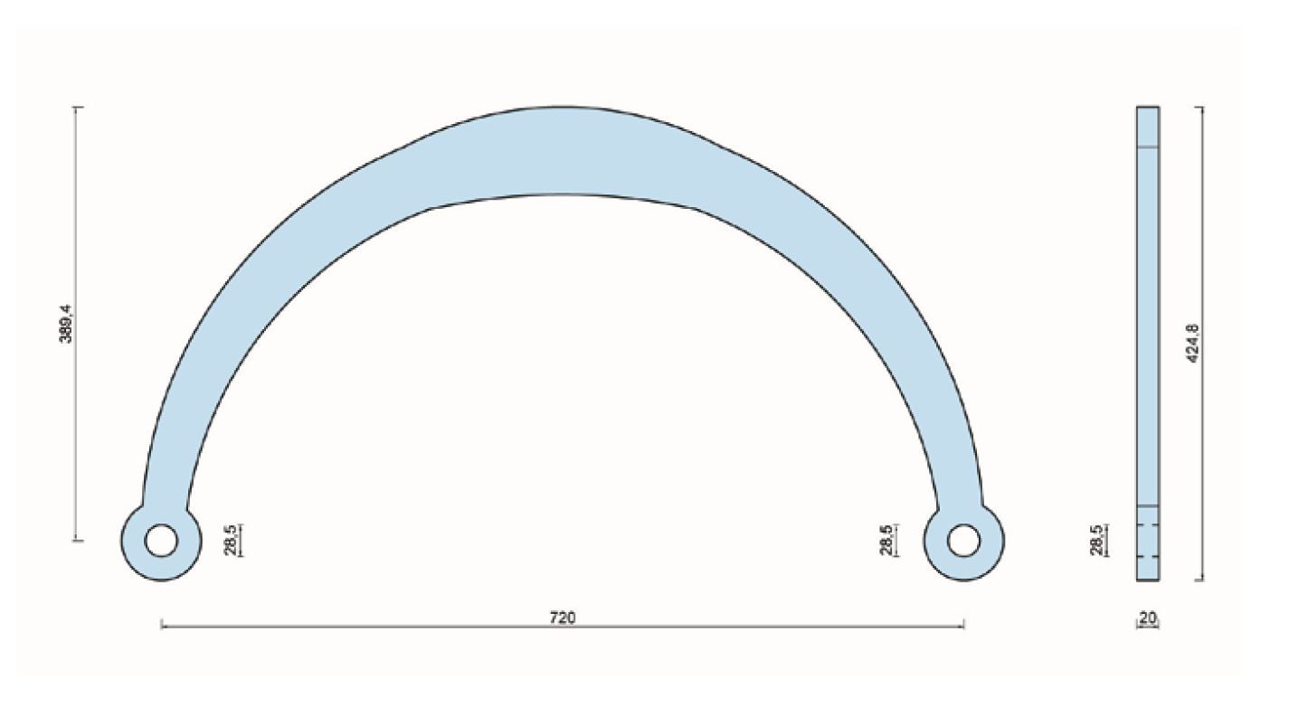Mezzaluna M1 è un elemento in acciaio strutturale S355, dello spessore di 20 mm da utilizzarsi per il collegamento fra trave e pilastro con apposite flange.