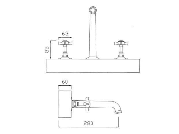 RL1015 - Rubinetto murale scatolato 3 fori.