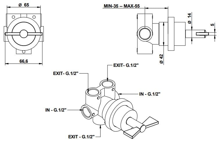 Deviatore a 5 vie (2 entrate 3 uscite) della collezione 936A_marcord.
