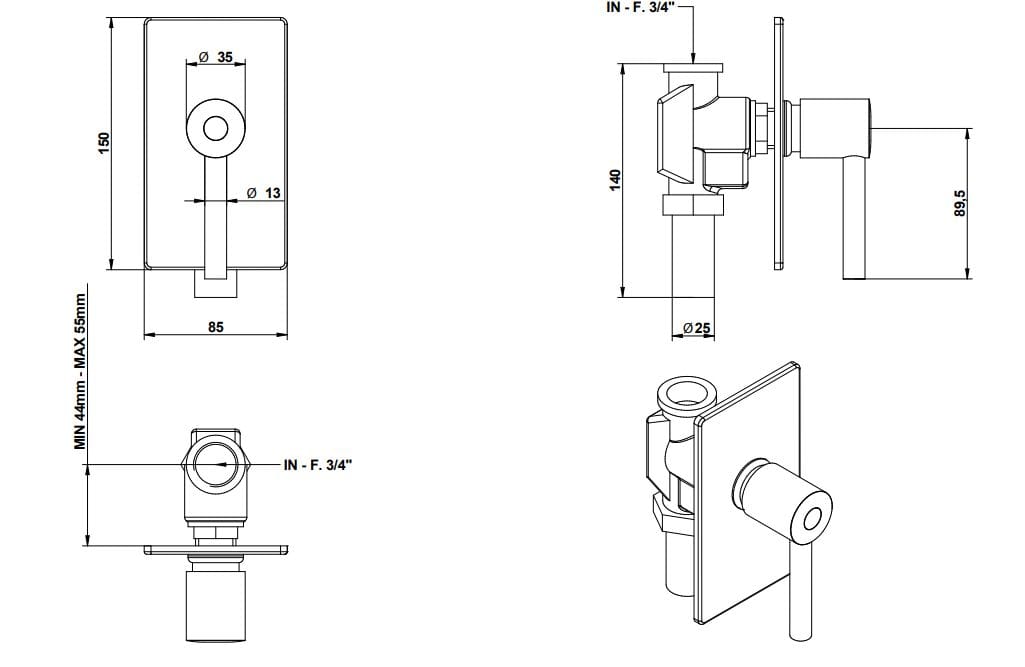 Passo rapido incasso da 3/4”.