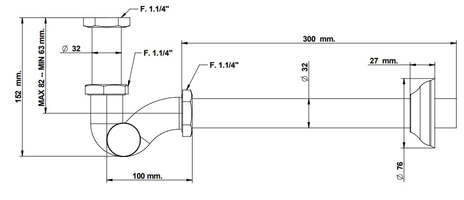 Sifone per bidet a S 1.1/4” con canotto lunghezza 300 mm.