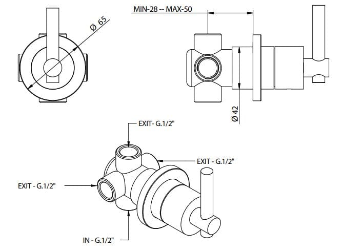 Deviatore a 3 uscite (1 entrata - 3 uscite) della collezione T Lever.