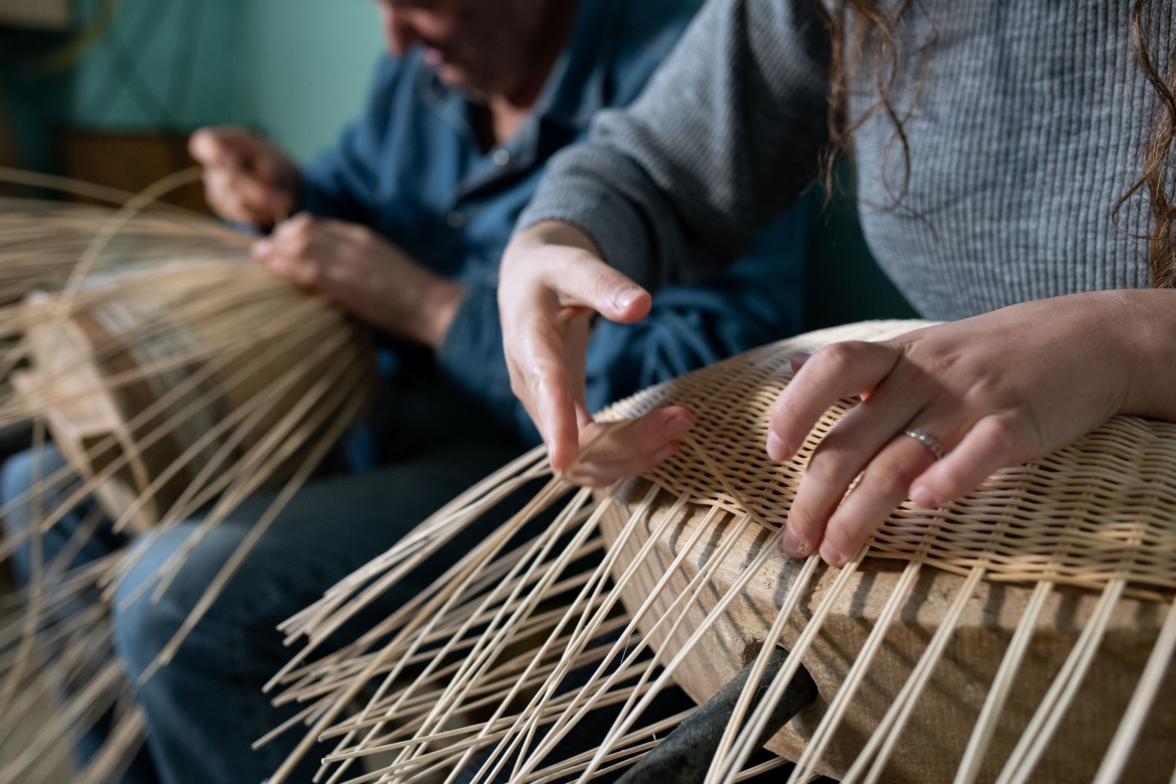 La linea di lampade in vimini intrecciato a mano è il risultato della connessione creativa tra Bottega