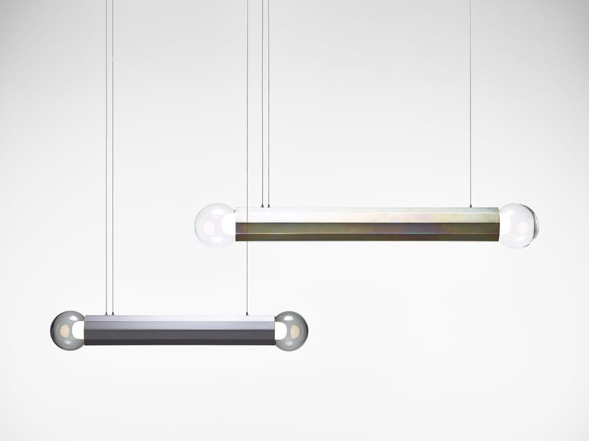 L'elemento dominante della collezione Prisma è uno stravagante apparecchio in metallo con una finitura particolare. Le classiche sfere di vetro soffiato a mano sono ancorate a una o a entrambe le estremità di un robusto prisma metallico decagonale che dà il nome alla collezione. La forma e la superficie sorprendente riflettono la luce con angolazioni diverse e inaspettate, come un prisma. Con la possibilità di scegliere tra due diverse ed eleganti finiture - acciaio spazzolato o laccato giallo zinco - la lampada è un audace oggetto artistico negli interni che offre composizioni verticali, orizzontali e diagonali uniche con sottili riflessi colorati. La collezione è composta da una lampada a sospensione orizzontale con due sfere di vetro doppie e da una lampada a sospensione verticale con una sola sfera di vetro, entrambe appese a funi metalliche. Un'altra variante tipologica è un'imponente lampada da terra, una maestosa scultura luminosa a forma di robusto decagono verticale sormontato da una sfera di vetro luminosa. La finitura strutturata dell'apparecchio in metallo è uno dei tratti distintivi della collezione e, insieme al vetro trasparente o al vetro fumé grigio, costituisce un gioiello con cui abbellire interni privati, hotel e ristoranti. Maggiori informazioni sono disponibili sul sito del produttore