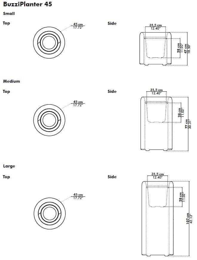 BuzziPlanter sono vasi disponibili in varie dimensioni e colori.