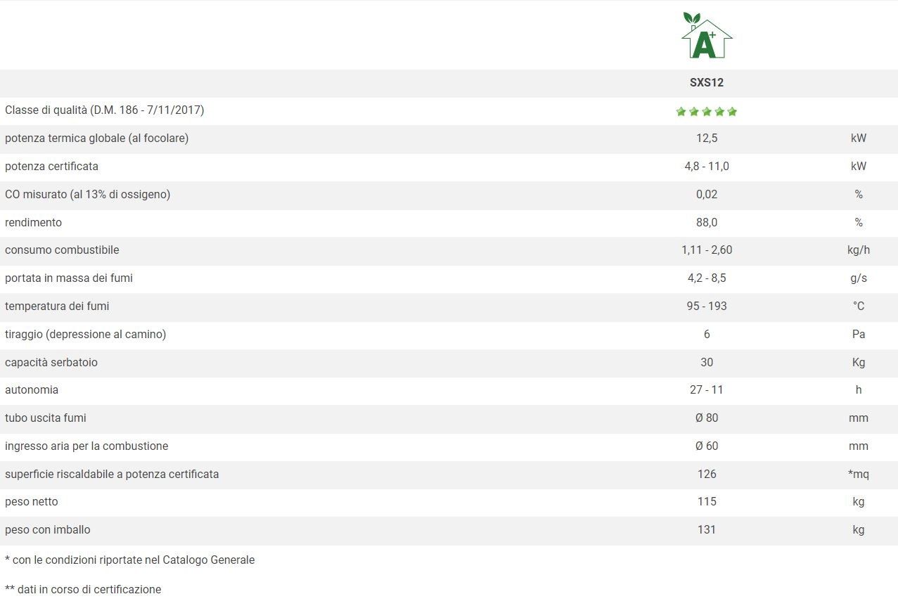 • potenza termica globale (al focolare) 13,4 kW