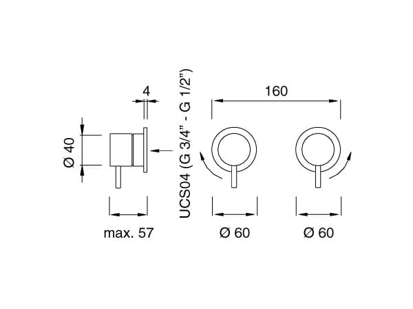 Gruppo 2 rubinetti apri/chiudi a parete con miscelazione