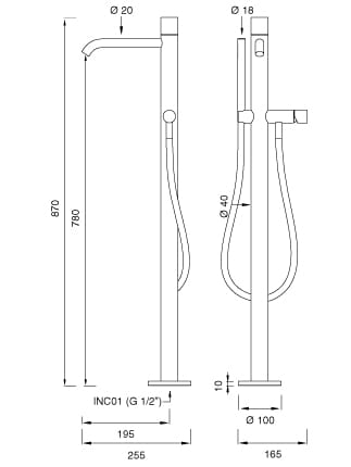 Ceadesign GIOTTO PLUS 97 Miscelatore per vasca da terra in acciaio inox con doccetta Linea GIOTTO PLUS