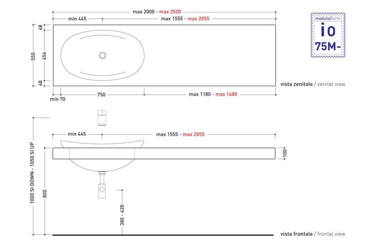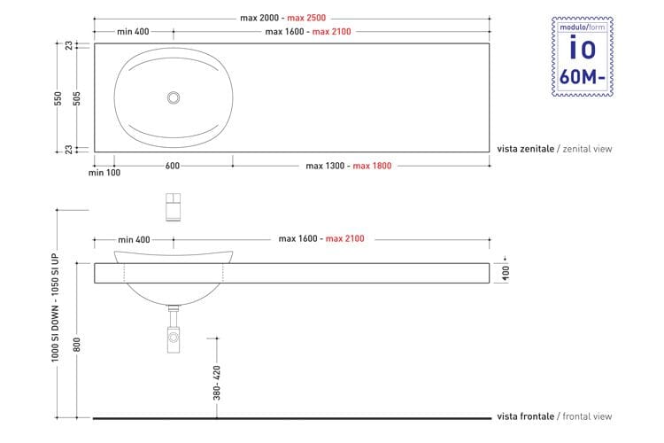 Piano lavabo doppio della serie IO.
