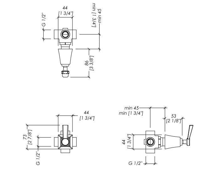 Gusto Anni Trenta per un deviatore che rende omaggio alla grande stagione dell'Art Déco americana, rileggendone in chiave contemporanea estetica e proporzioni. Sono di dichiarata ispirazione modernista la solidità monolitica, le linee geometriche e le superfici sfaccettate e riflettenti. Disponibile in finitura bronzo, cromo, nickel lucido, oro chiaro.
