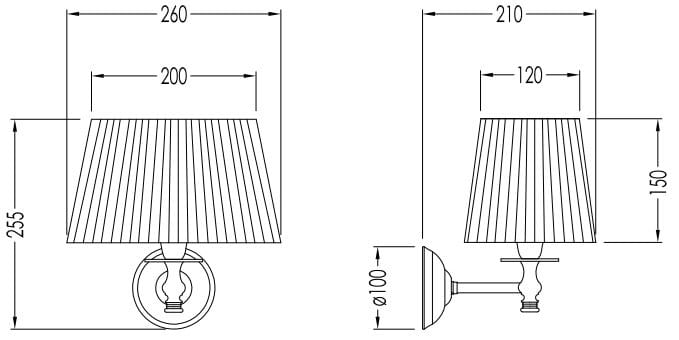 DAISY 3 è una lampada da parete in tessuto e ottone. Raffinata ispirazione novecentesca per un'elegante lampada con paralume in tessuto plissettato e braccio stondato in ottone.