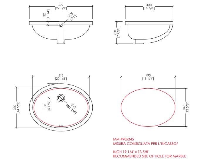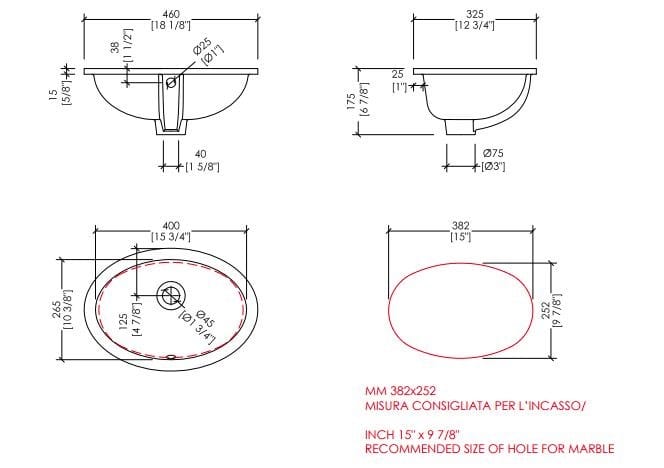 Devon&Devon WHITE 46/56 Lavabo da incasso sottopiano ovale