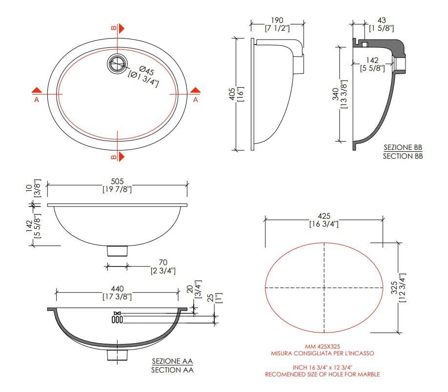 Devon&Devon WHITE 50 - 2RALS50 Lavabo da incasso sottopiano ovale