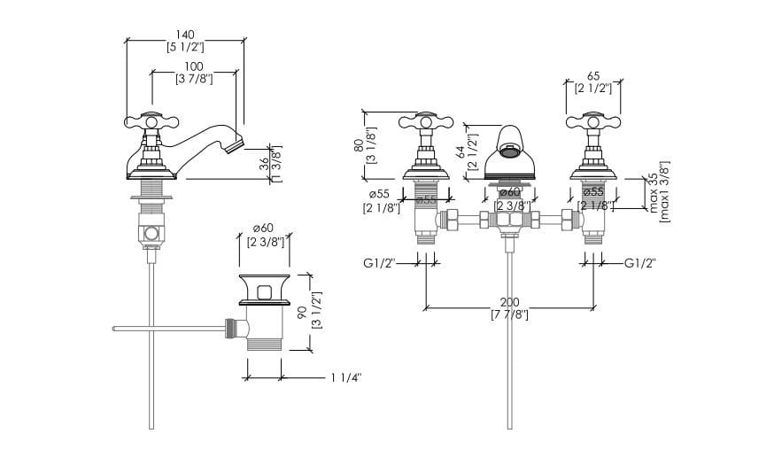 Le tradizionali manette a croce e gli elementi in fine ceramica bianca rendono inconfondibile una batteria per bidet a 3 fori con saltarello che distilla e rilegge in chiave contemporanea l'ispirazione dichiaratamente rétro. In ottone, è disponibile in finitura bronzo, cromo, nickel lucido, oro chiaro.