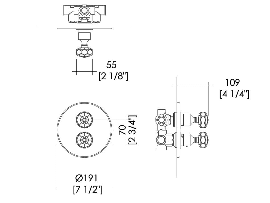 King - Pregiatissime lavorazioni artigianali, dettagli preziosi e sofisticate citazioni rétro per un miscelatore termostatico a 1, 2 o 3 uscite perfetto per sale da bagno di eleganza esclusiva. In ottone, è disponibile in finitura cromo, nickel lucido, ottone antico, oro 14kt e oro 24kt.