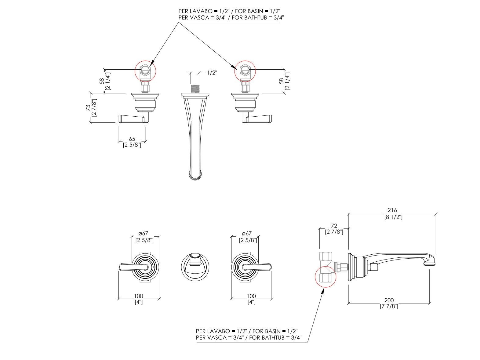Devon&Devon MANHATTAN Miscelatore per lavabo a 3 fori a muro Linea Manhattan