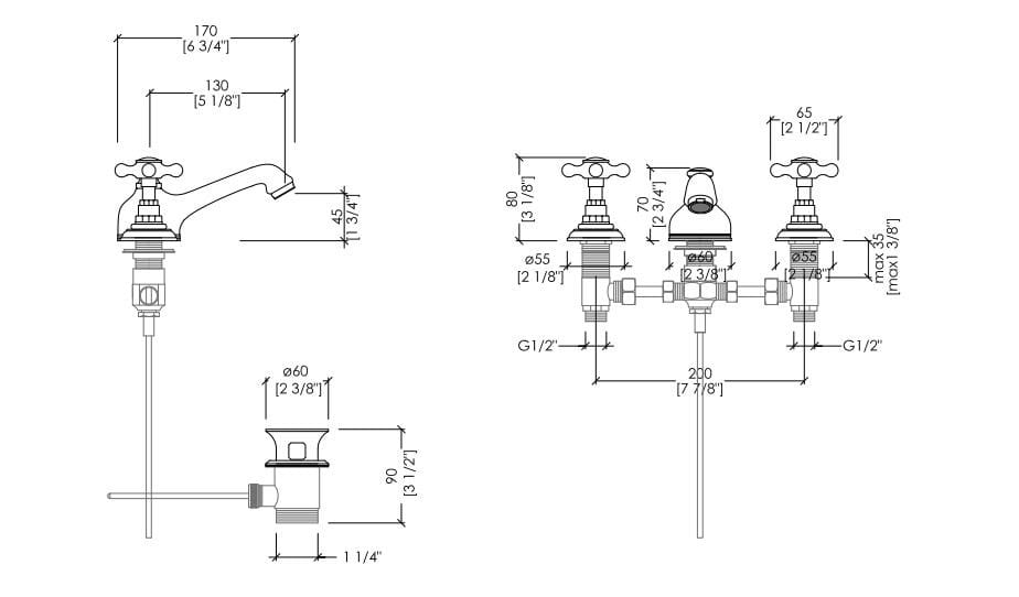 Devon&Devon AUSTIN Miscelatore per lavabo a 3 fori da piano Linea Austin