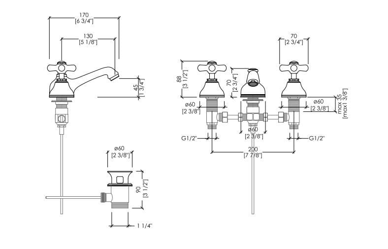 Eleganza classica di ispirazione British per una batteria per lavabo a 3 fori con saltarello che fonde magnificamente atmosfere vintage e funzionalità contemporanea. In ottone, è disponibile in finitura bronzo, cromo, nickel lucido, oro chiaro.