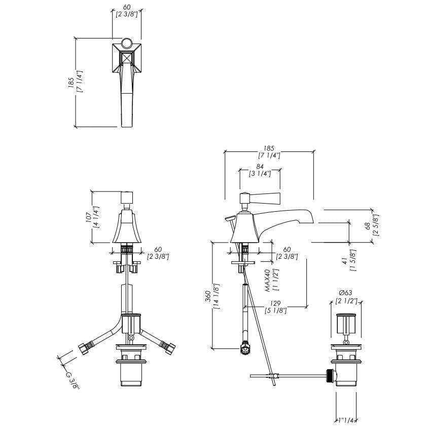 Vip Time - Design sofisticato e geometrie rigorose di chiara ispirazione Anni Trenta per un'elegante batteria da lavabo monoforo con saltarello, resa inconfondibile dalle leve a tronco di piramide in ottone nero lucido, in bianco opaco o in metallo. Disponibile in finitura cromo, nickel lucido e oro chiaro.