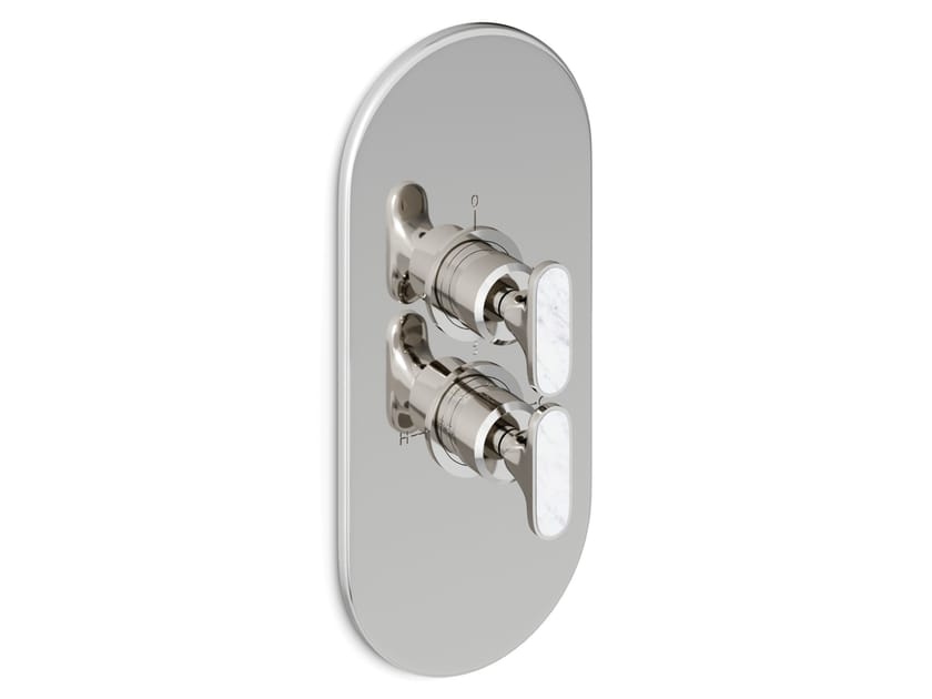 Twenties è un miscelatore termostatico a 3 vie con dettagli in marmo.