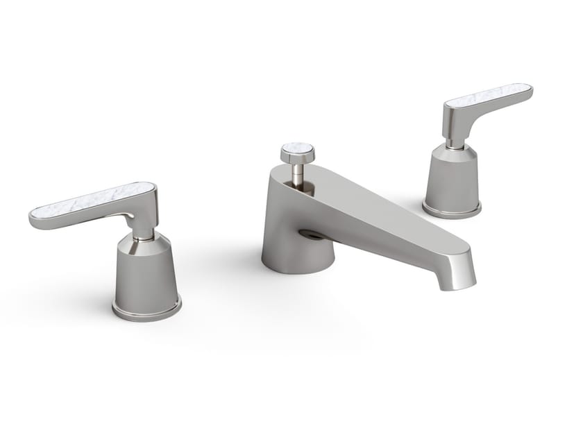 Twenties è un rubinetto per lavabo da piano a 3 fori con dettagli in marmo.