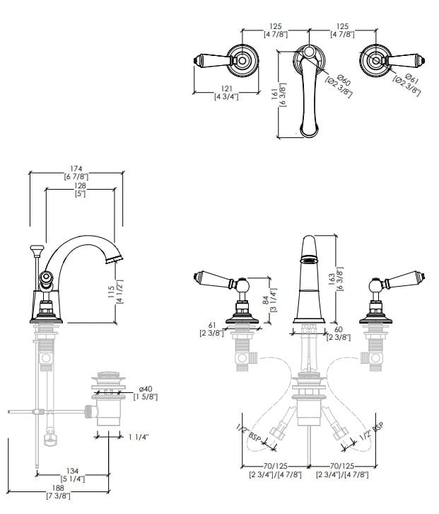 Devon&Devon DANDY Rubinetto per lavabo da piano a 3 fori con rosette separate Linea Dandy