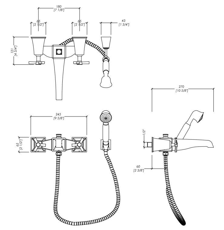 Devon&Devon TIME Rubinetto per vasca a muro in ottone con doccetta Linea Time