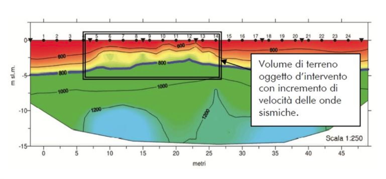 Per verifiche qualitative estese si possono affiancare alle penetrometrie prove di tipo geofisico pre e post-intervento (tomografia sismica, elettrica, ecc.).