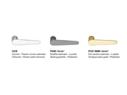 La maniglia Leva, nel modello Mirror, si presenta con una doppia finitura peculiare: il fronte dell’oggetto è lucido mentre il corpo è satinato, sempre nella stessa tonalità. La maniglia è, un elemento abituale, la cui progettazione necessita di grande attenzione. Per donare unicità al prodotto, in Leva abbiamo differenziato le due superfici che compongono l’oggetto. Leva viene proposta in due versioni.