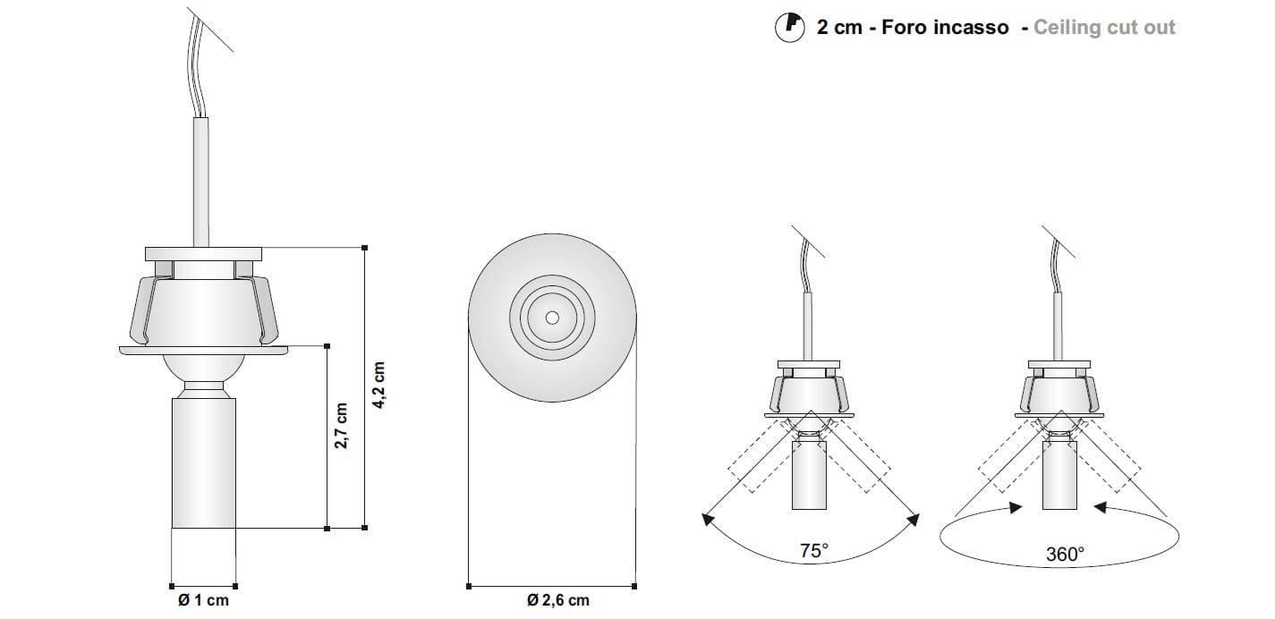 SNORKY è un faretto orientabile da incasso in alluminio cromato. Completo di dissipatore.
