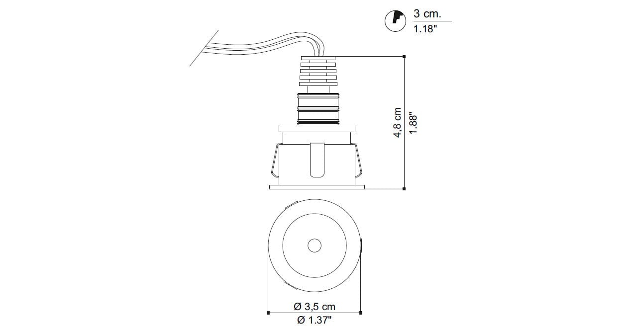 TOP è un faretto da incasso in alluminio verniciato bianco, completo di dissipatore. Ideale per piccole vetrine. Possibilità di montaggio con o senza cassaforma.